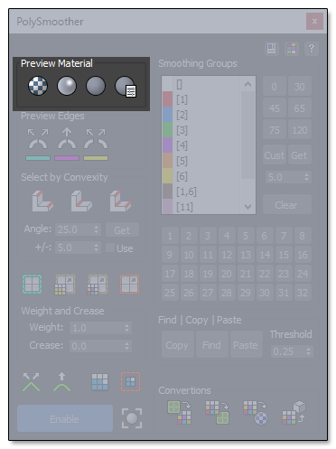 Here you can select how you would like to preview the Smoothing Groups.