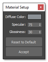 Here you can setup the Flat Material parameters such as Color, Secularity and Glossiness.