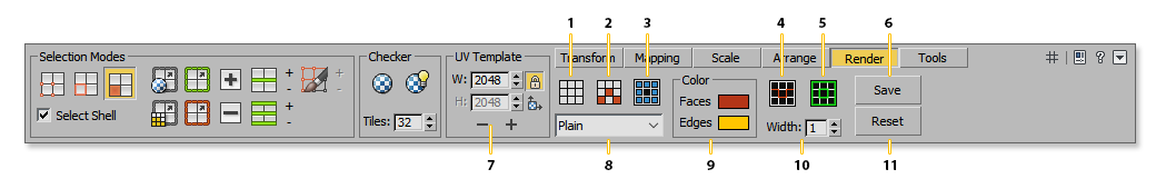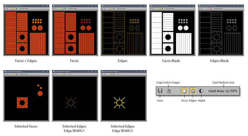 Unlike the standard 3ds Max VFB, it has features to show/hide faces and edges and also includes a feature to measure the used texture area.