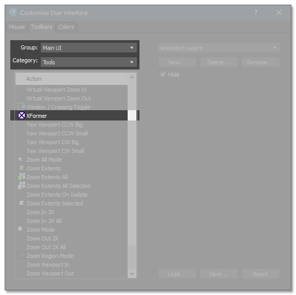 Drag and Drop the XFormer .mzp installer onto your 3ds Max viewport or run it via Menu->MAXScript->Run Script... and click Install.